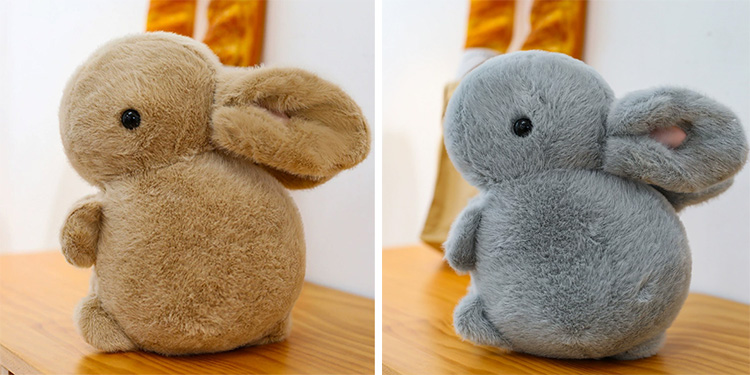 Hela kaninens kropp är tillverkad av fluffigt plyschtyg, som har en mycket mjuk och hudvänlig struktur. Visuellt förmedlar det också en varm känsla. Den övergripande formen är rund och slät. Kroppen är liten men fyllig, och den ser väldigt söt ut. Påskharen plysch har ett par långa öron. Det ser extremt vackert ut. Ögonen är små svarta cirkulära mönster. Även om de är enkelt presenterar de utseendet på en kanin mycket bra. Den här lilla kaninen finns i fyra olika färger: vit, rosa, khaki och grå.