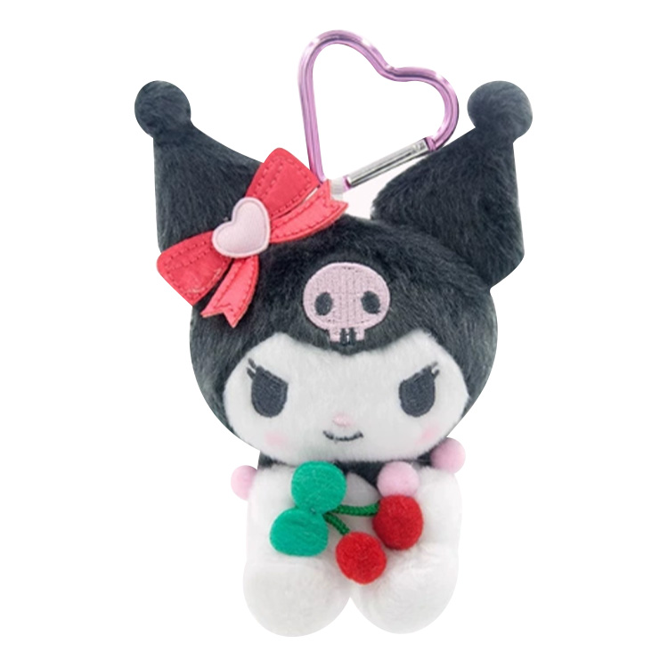 Kuromi: Huvudfärgerna i Kuromi är svartvita. Det finns ett rosa skalle -mönster på huvudet, som är dess signaturdesign. Röda dekorationer läggs också till i huvudet. Det har ett körsbär i armarna. Ansiktet är huvudsakligen vitt, och dess ögon och näsa är sys med tråd. Det finns också en dekoration på halsen, och det ser väldigt vackert ut.