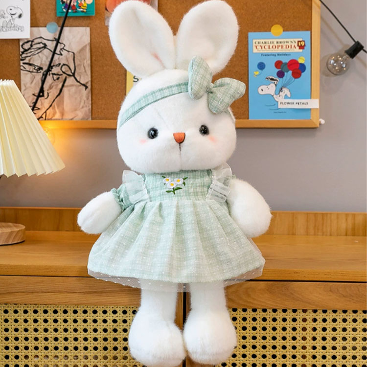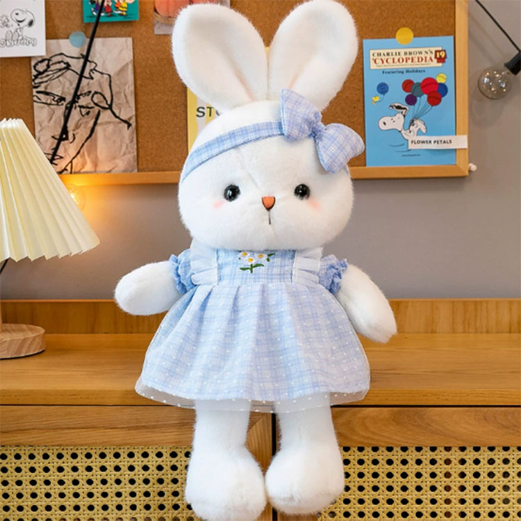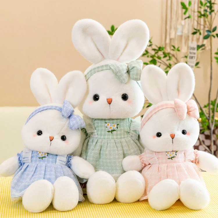 Den fyllda påskharen är lindad i högkvalitativt kort plyschtyg och fylld med PP-bomull inuti. Kjolarna de bär är ännu mer slående vackra. Dess söta utseende har vunnit många kunders fördel. Dessa högkvalitativa produkter produceras av Zebra Party® Plush Toy Factory och har passerat säkerhetscertifiering.